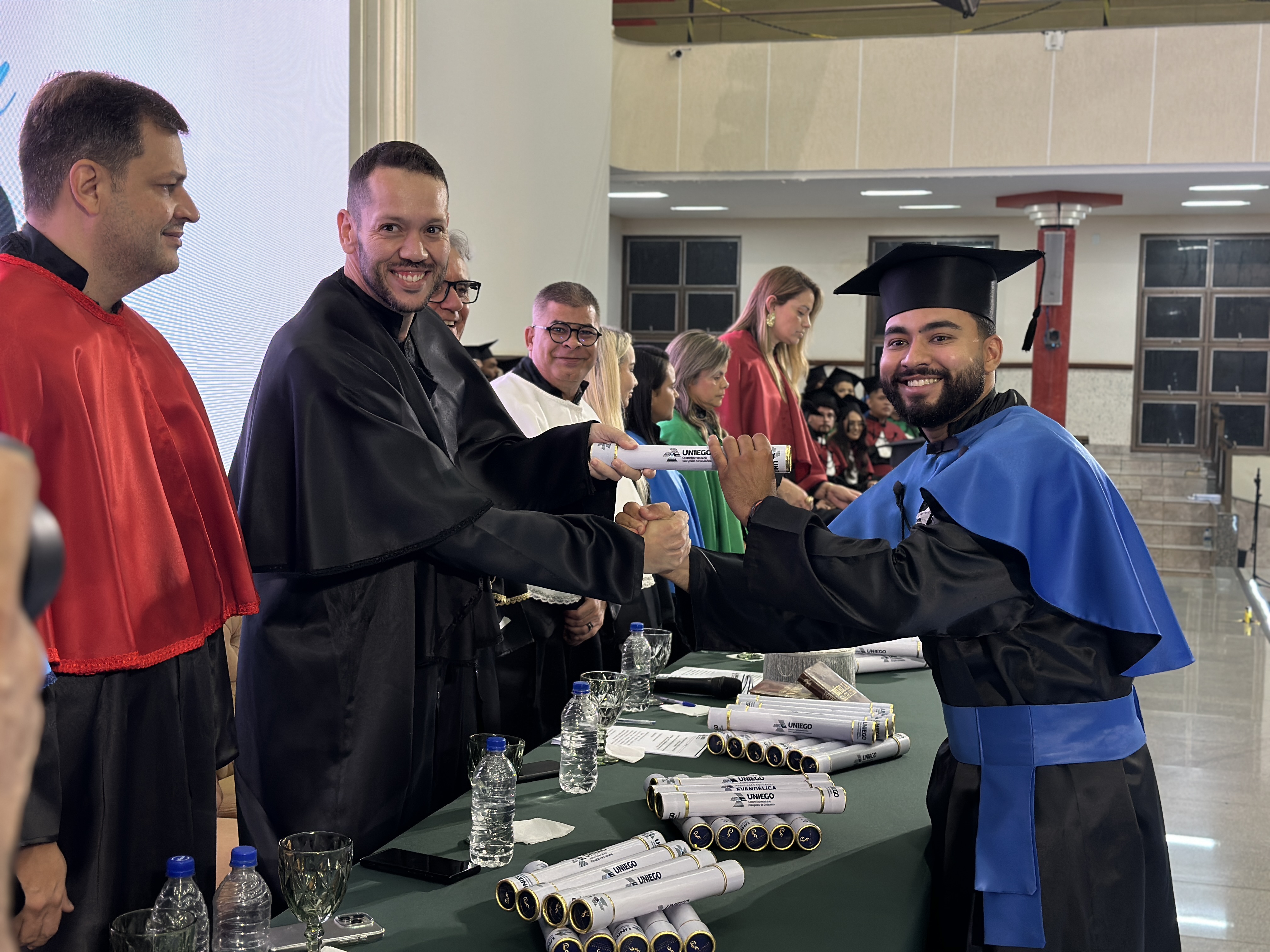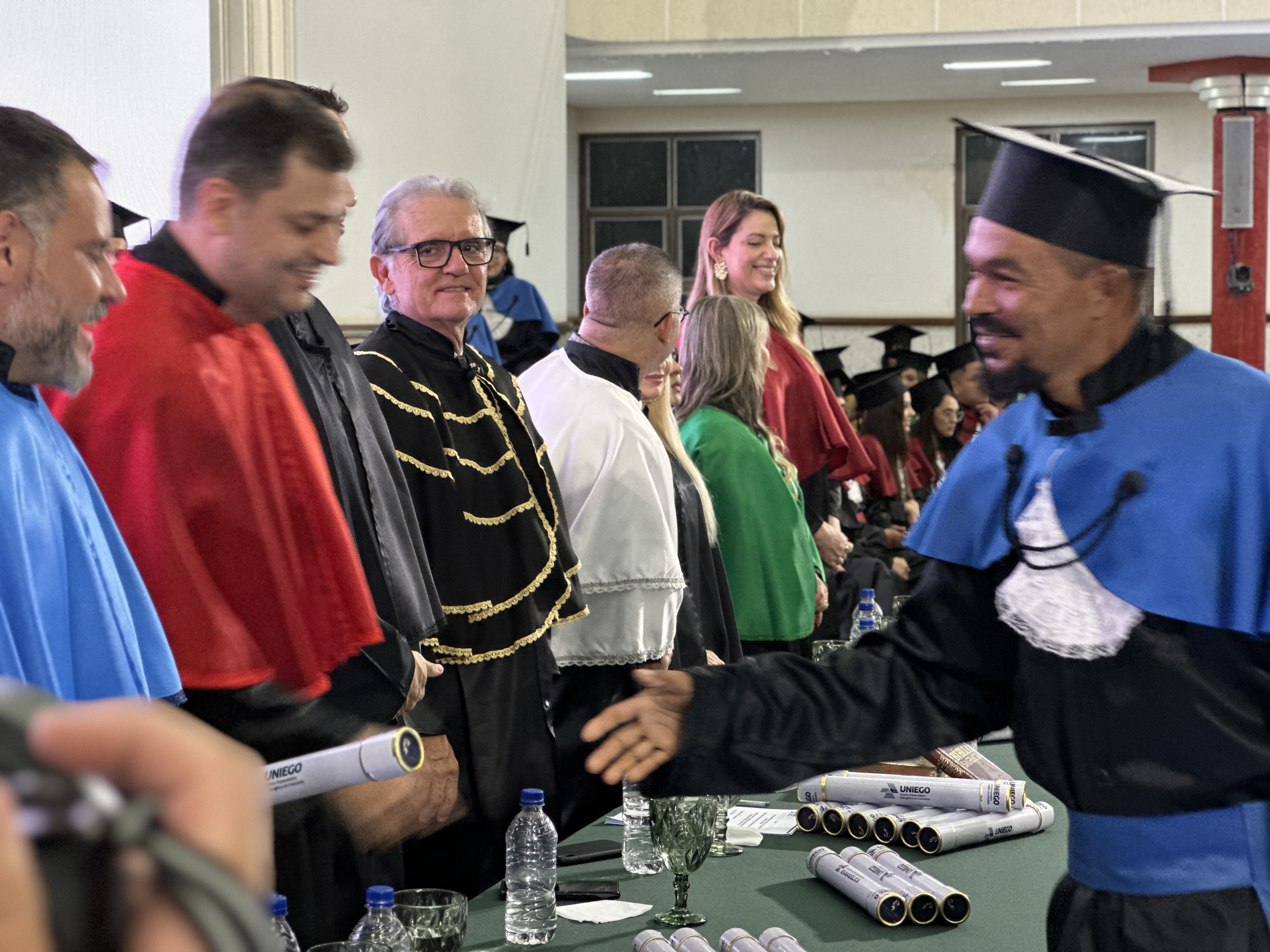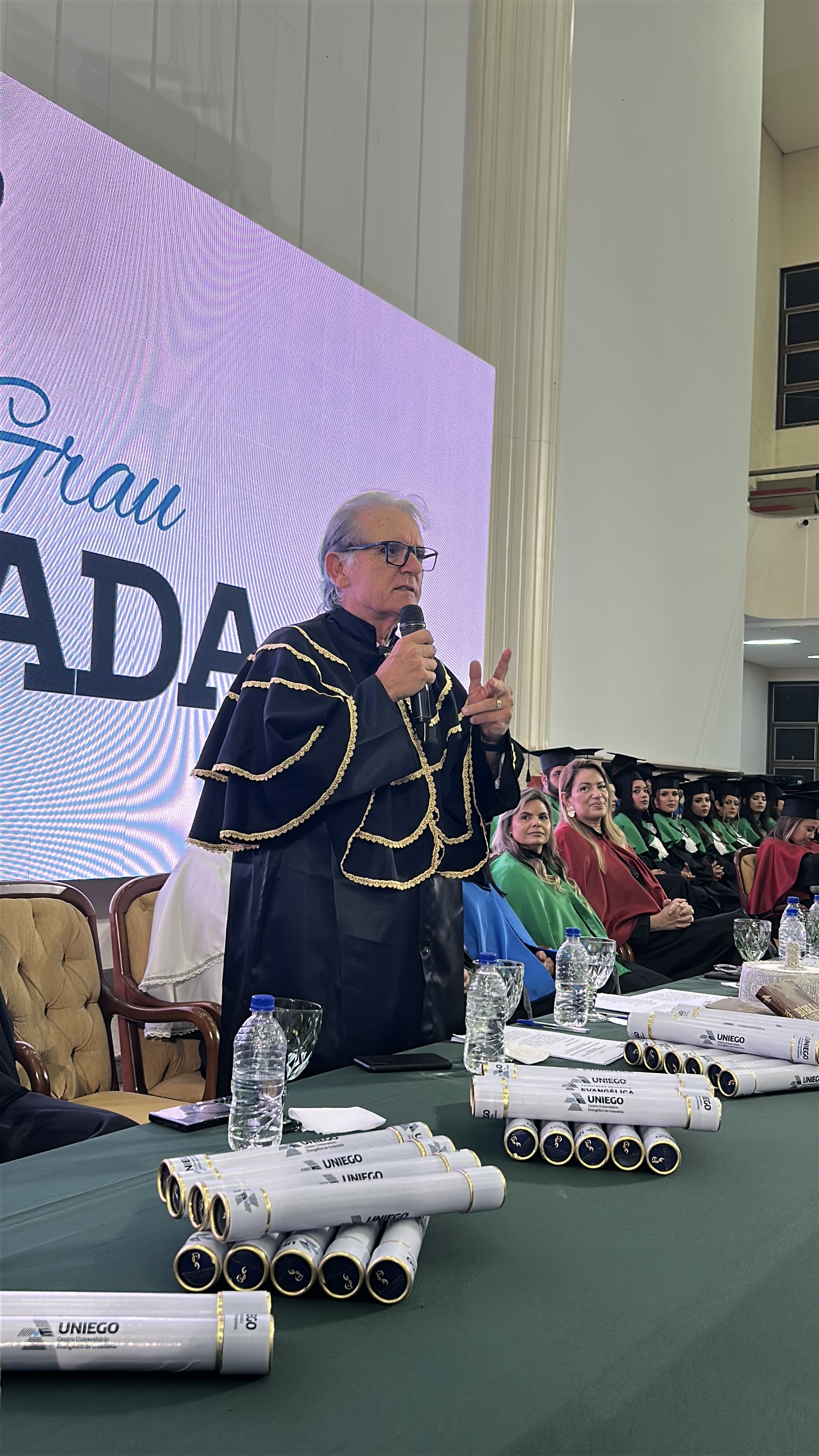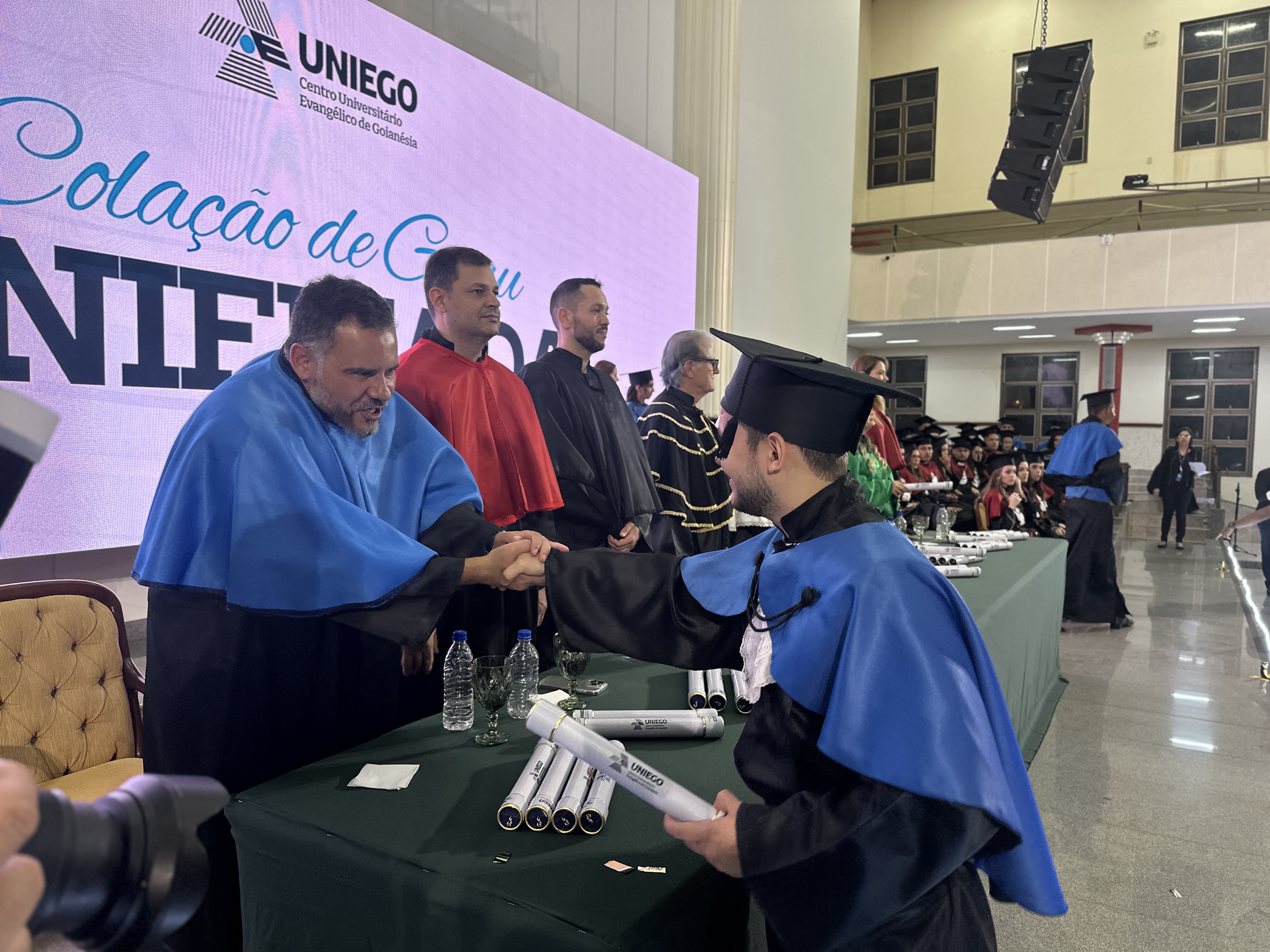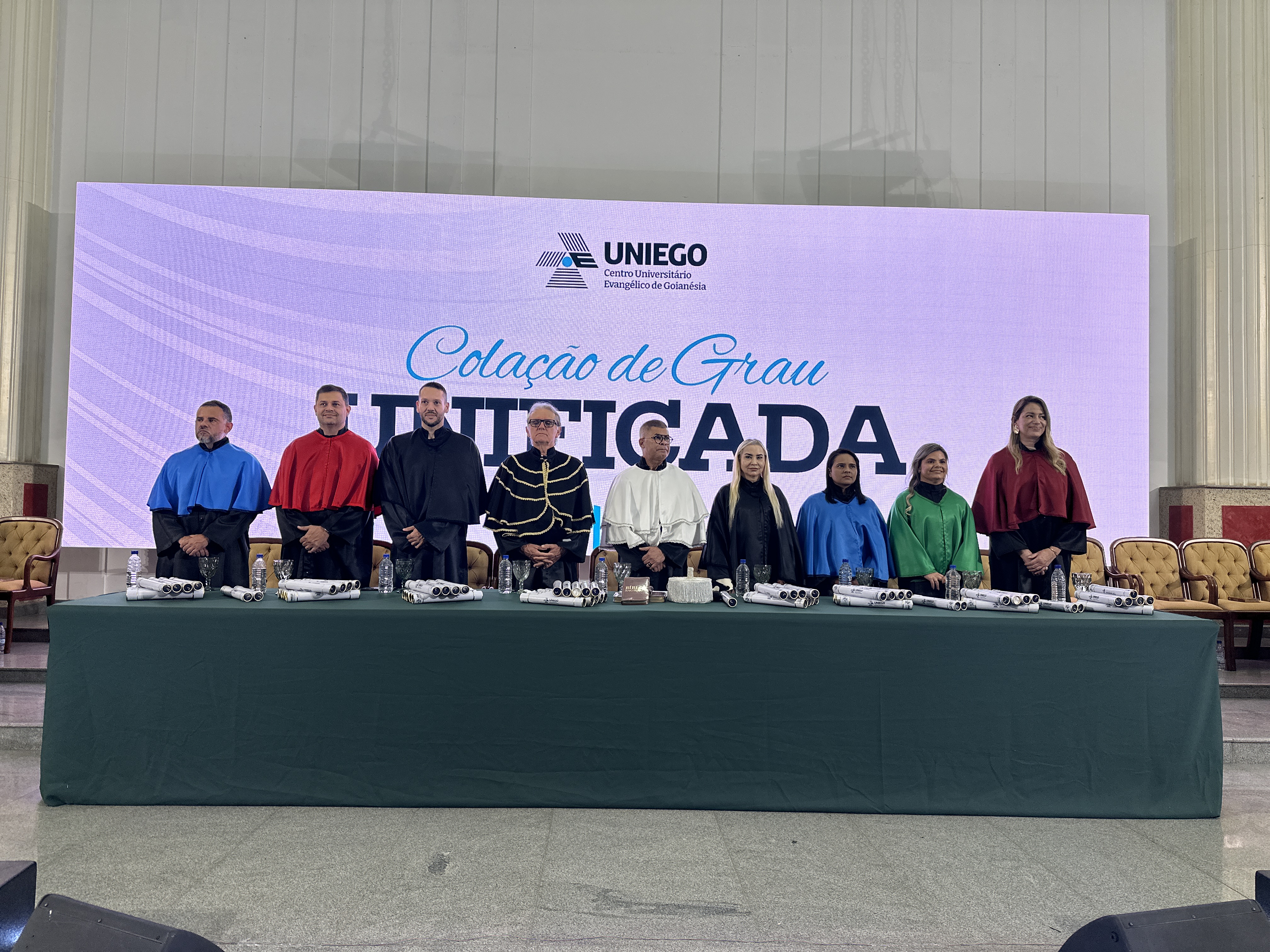 A solenidade contou com a presença do presidente da Associação Educativa Evangélica, Ernei de Oliveira Pina, além de docentes e representantes da gestão institucional. A cerimônia foi conduzida pelo magnífico reitor do UNIEGO, José Mateus dos Santos, que destacou o papel da instituição como agente transformador por meio da educação superior de qualidade, reforçando o compromisso com a excelência acadêmica, a ética profissional e a formação humanística.