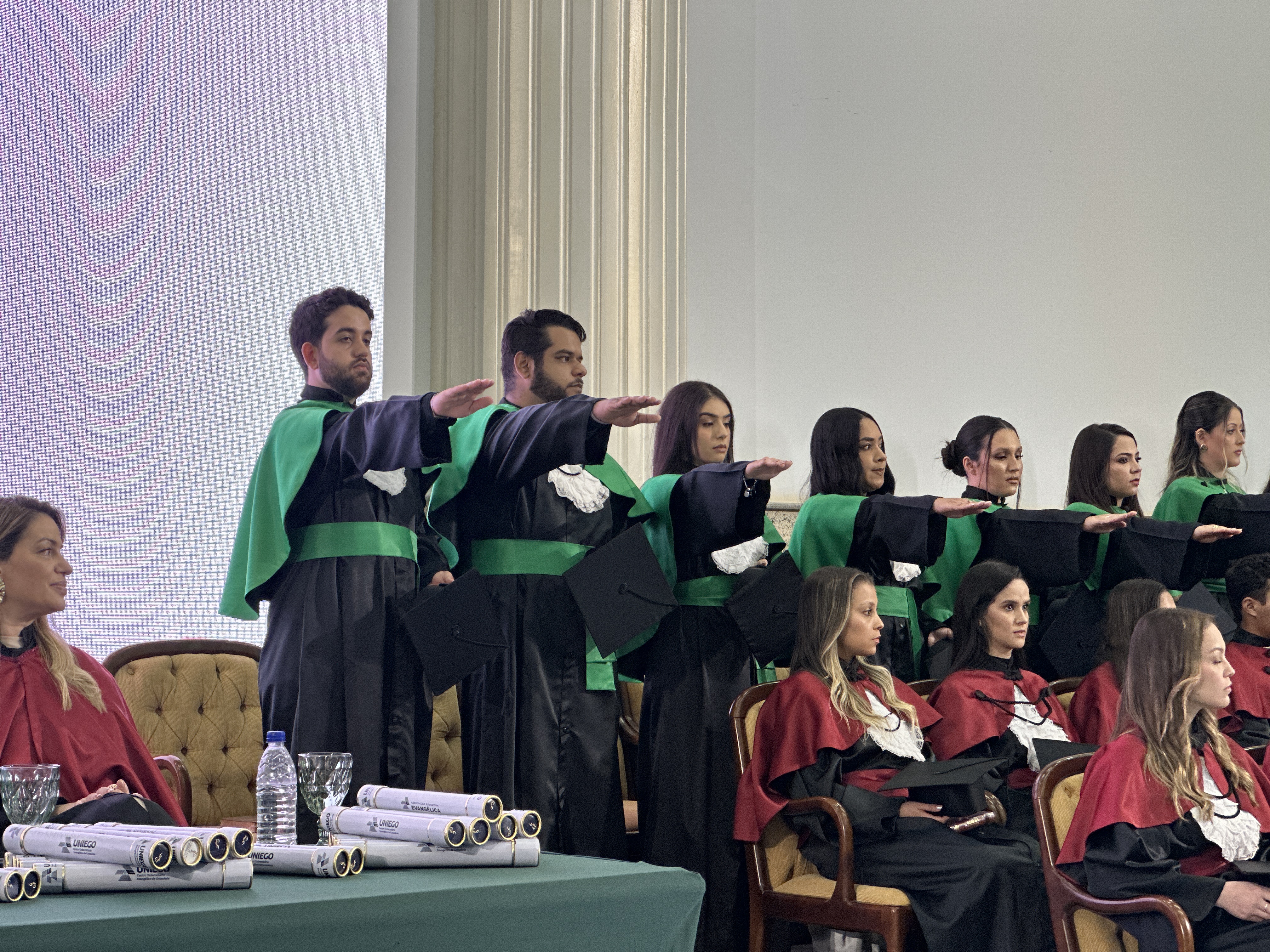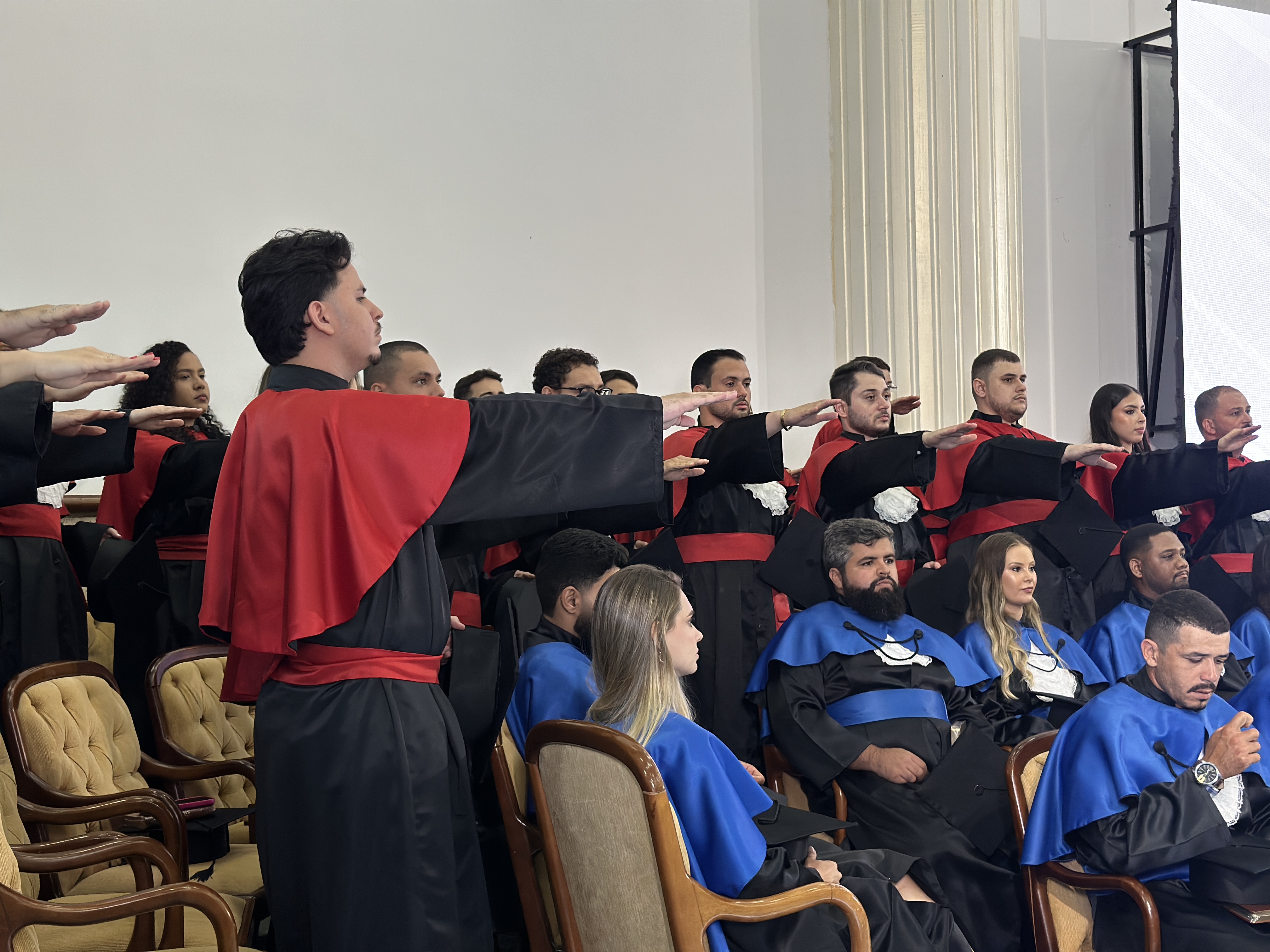 Na ocasião, colaram grau os concluintes dos cursos de Bacharelado em Agronomia, Direito, Enfermagem, Engenharia Civil, Engenharia Mecânica e Odontologia. A cerimônia simbolizou a consolidação de anos de dedicação, esforço e compromisso com a formação profissional e cidadã.